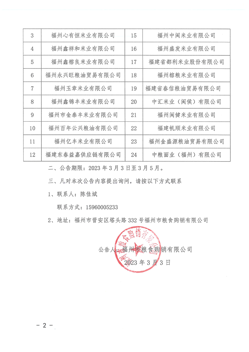 福州市粮食购销有限公司关于入围2023-2025年度市级应急储备成品粮代储代轮换企业名录的公告