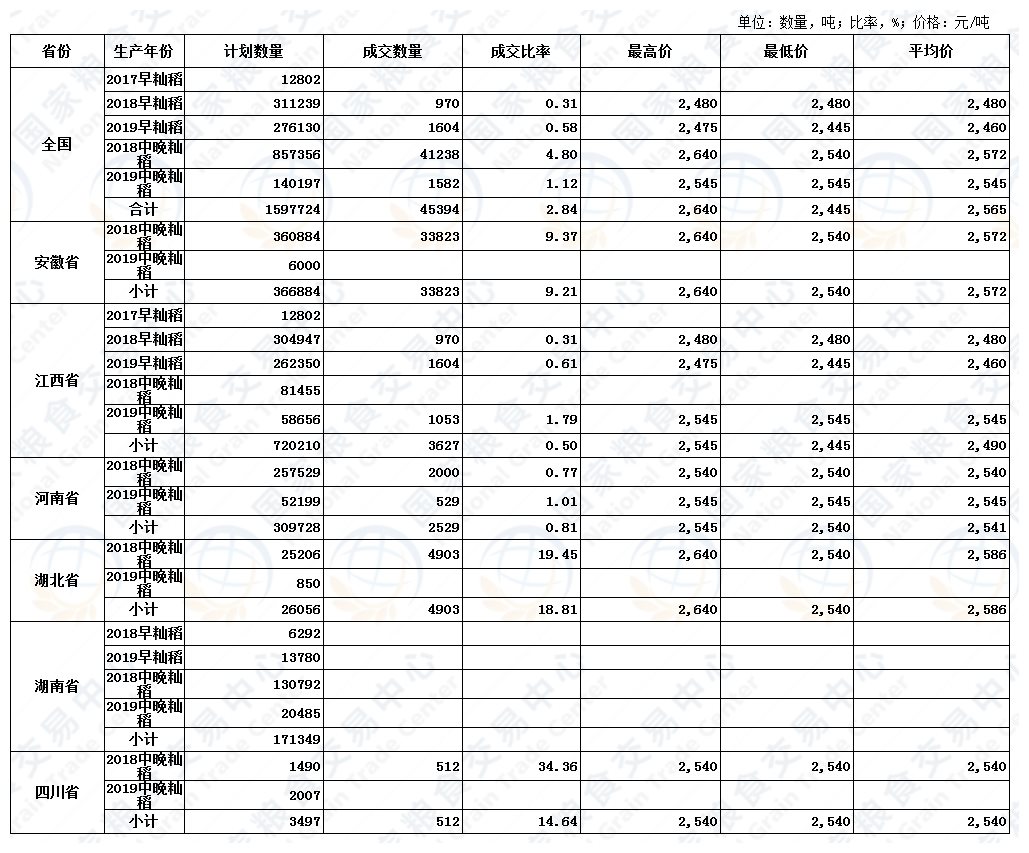 4月2日最低收购价稻谷(2017-2019年)交易结果