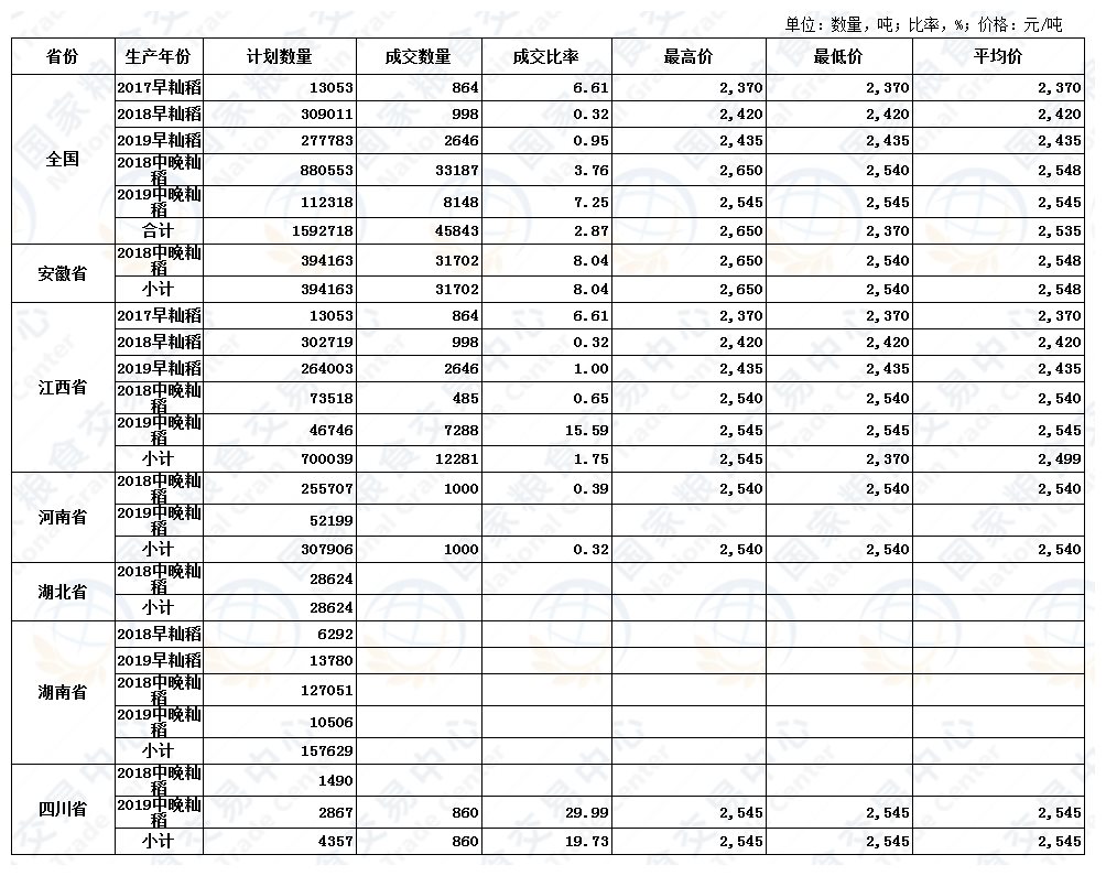 3月19日最低收购价稻谷(2017-2019年)交易结果