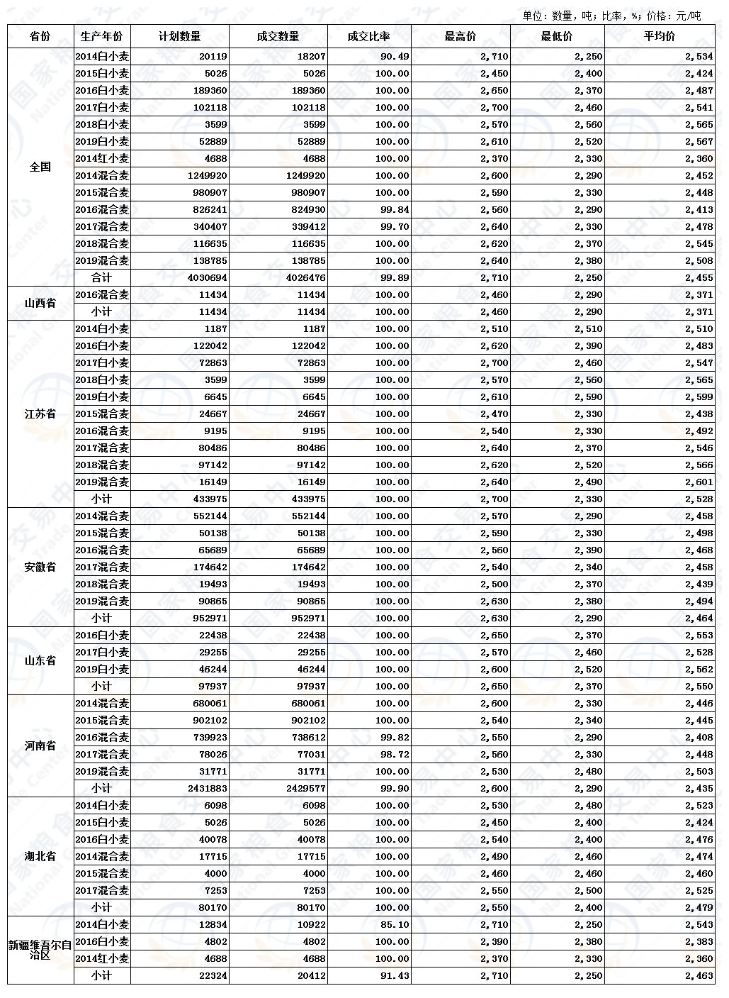 1月19-20日最低收购价小麦、新疆临储小麦交易结果