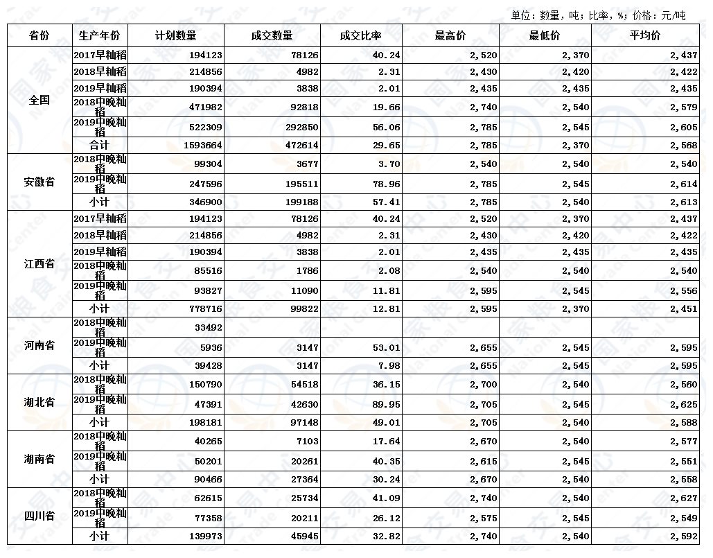 11月27日最低收购价稻谷(2017-2019年)交易结果