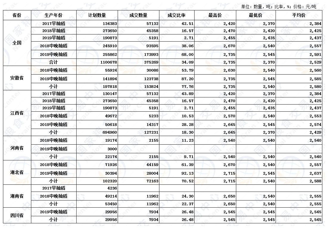 11月13日最低收购价稻谷(2017-2019年)交易结果