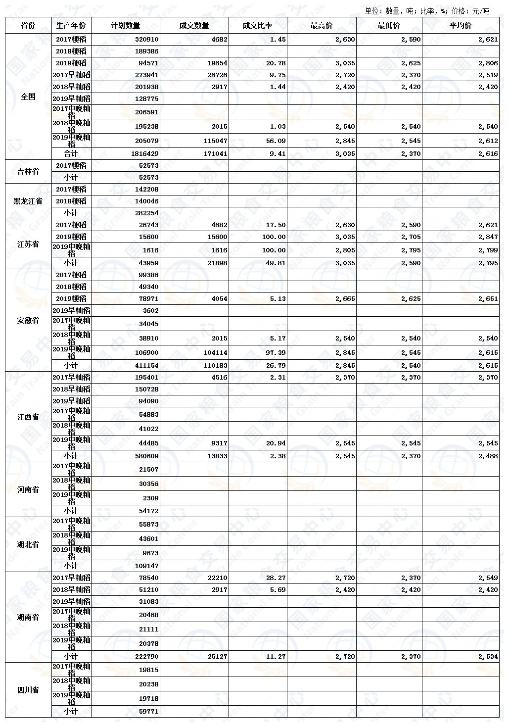8月21日最低收购价稻谷(2017-2019年)交易结果