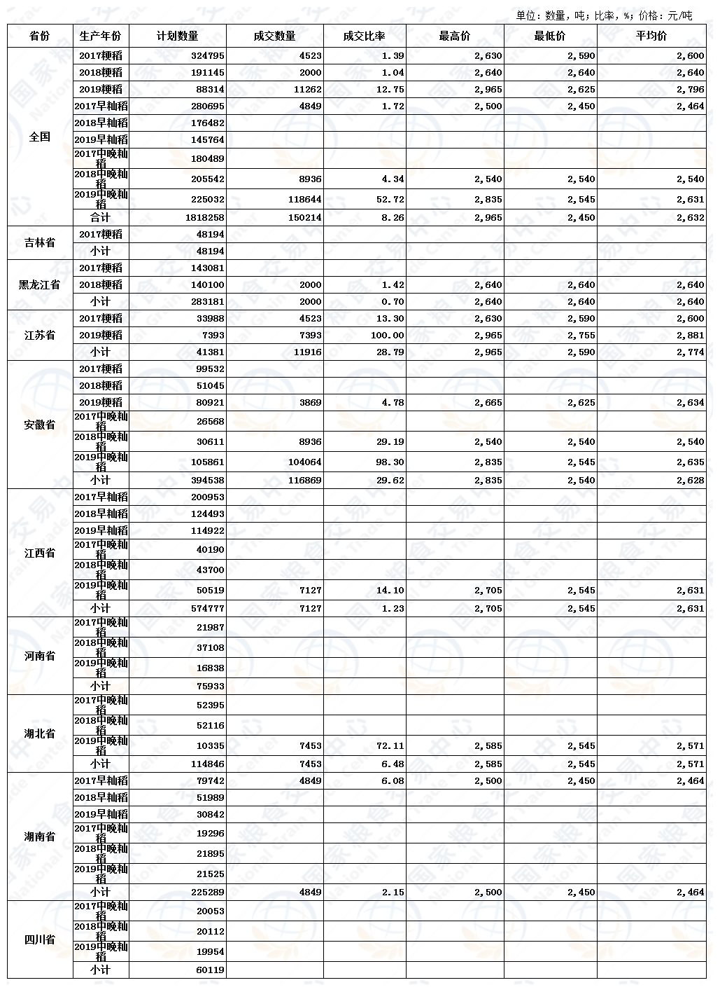 8月14日最低收购价稻谷(2017-2019年)交易结果