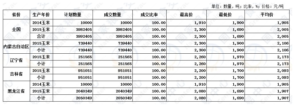 8月6日国家临时存储玉米交易结果