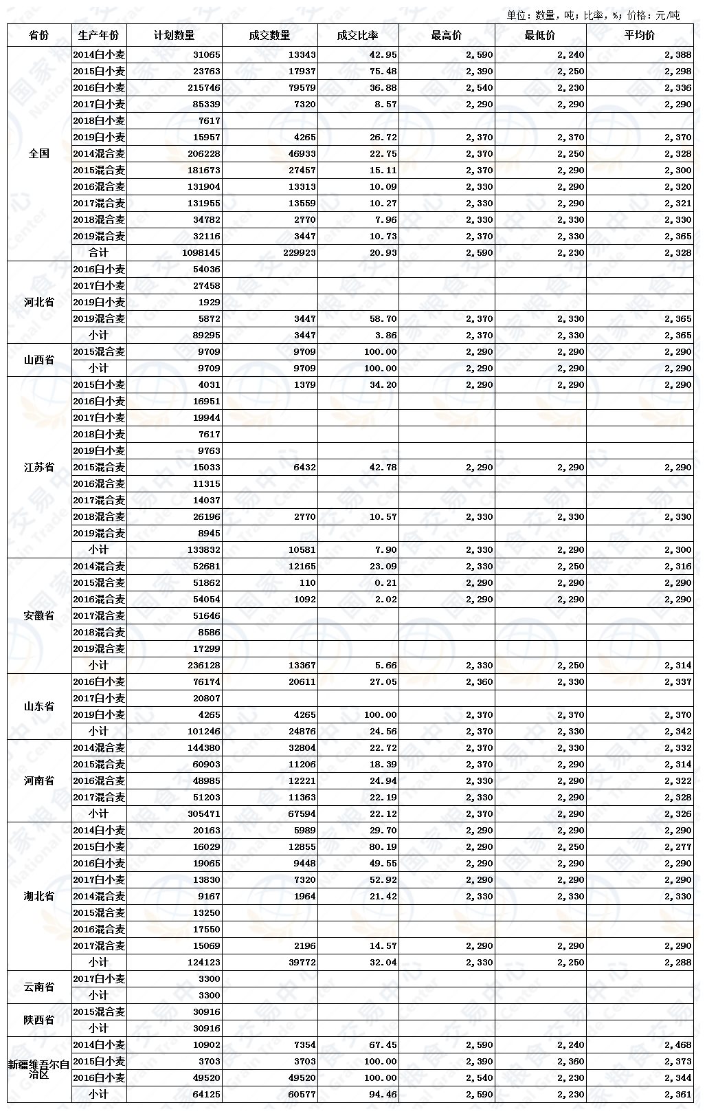 7月29日最低收购价小麦、国家临时存储小麦交易结果
