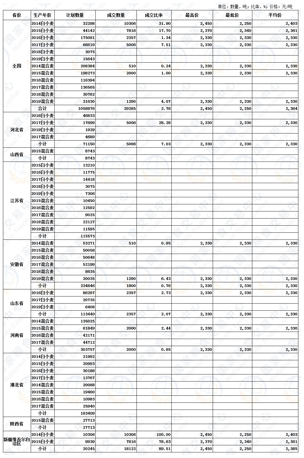7月8日最低收购价小麦、国家临时存储小麦、跨省移库小麦竞价交易结果