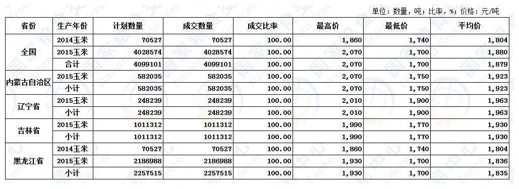 7月2日国家临时存储玉米交易结果