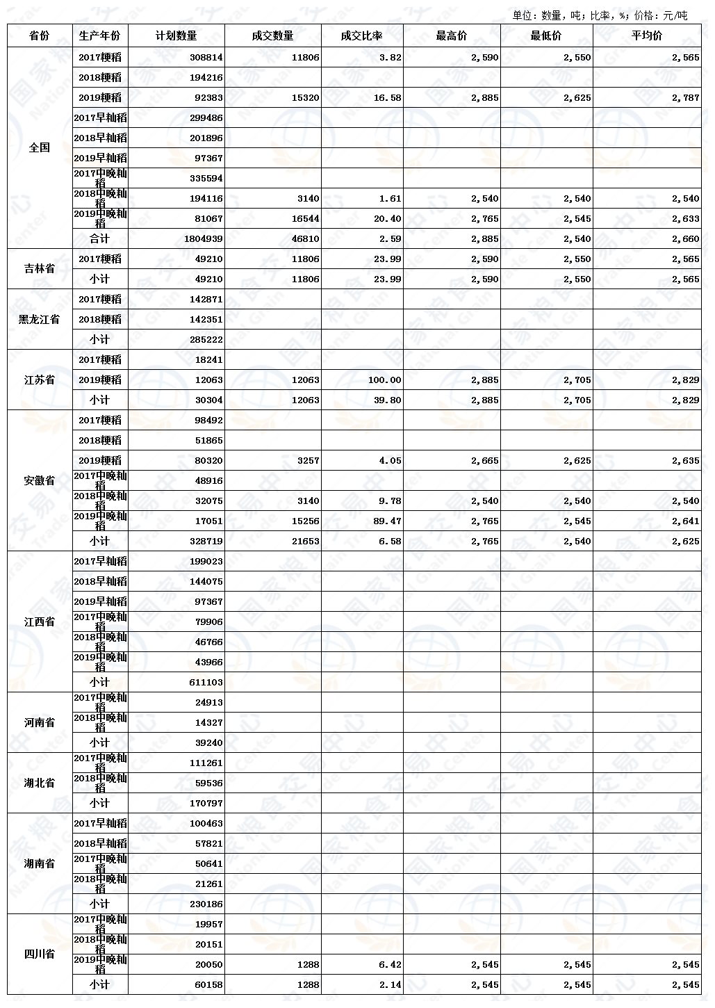 6月23日最低收购价稻谷(2017-2019年)交易结果