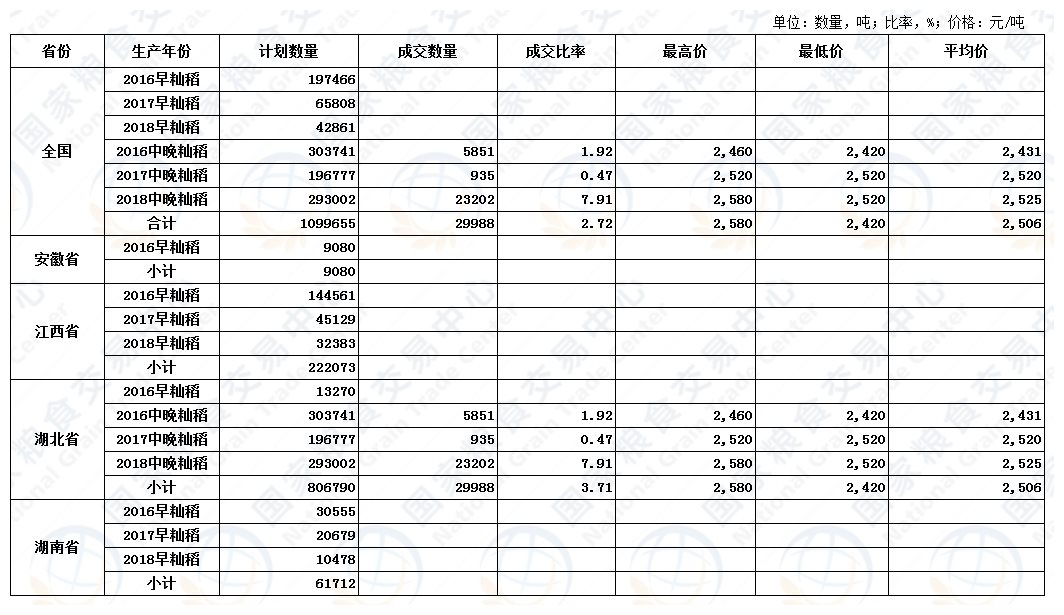 4月10日最低收购价稻谷(2016-2018年)交易结果