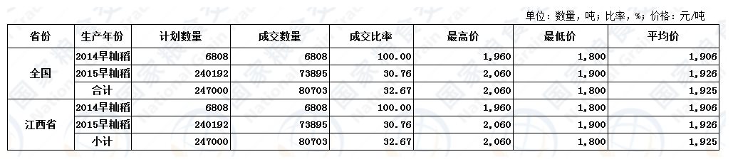 3月6日最低收购价稻谷(2014-2015年)交易结果