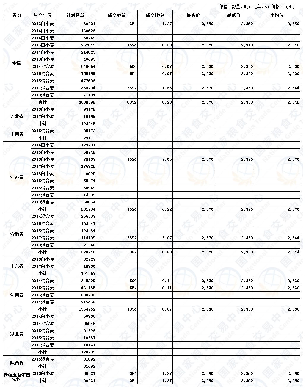 1月21日最低收购价、国家临时存储、跨省移库小麦交易结果