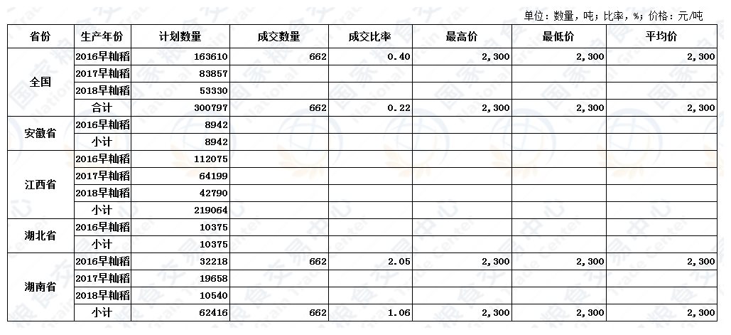 1月10日最低收购价稻谷(2016-2018年)竞价交易结果