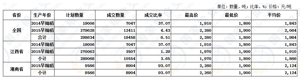 12月27日最低收购价稻谷(2014-2015年)交易结果