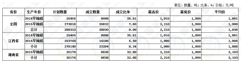12月13日最低收购价稻谷(2014-2015年)交易结果