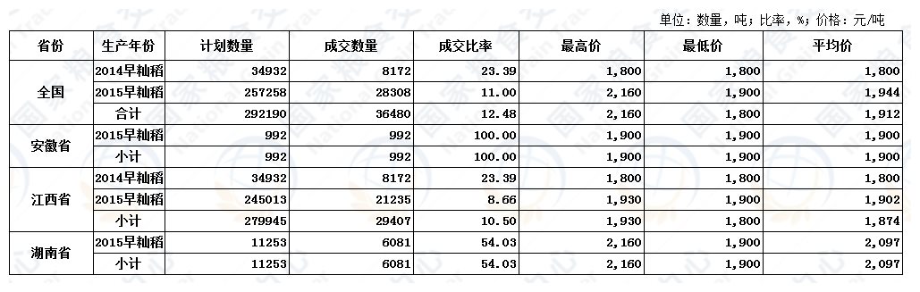 11月29日最低收购价稻谷(2014-2015年)交易结果
