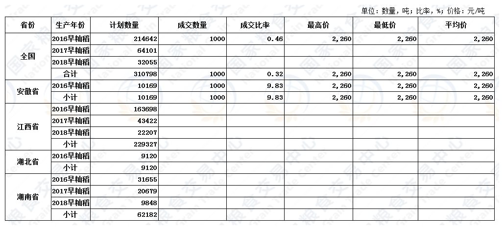 11月8日最低收购价稻谷(2016-2018年)交易结果
