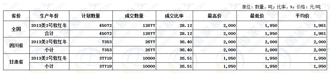 11月4日国家政策性粮油挂牌交易结果