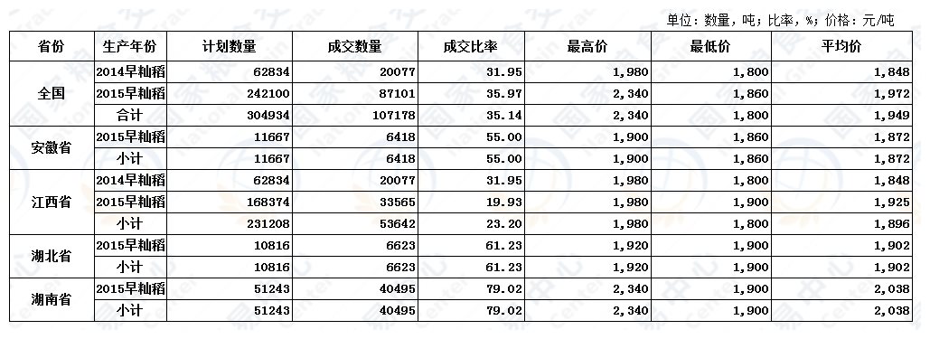 10月18日最低收购价稻谷(2013-2015年)交易结果
