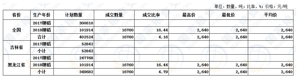 9月20日最低收购价稻谷(2017-2018年)交易结果