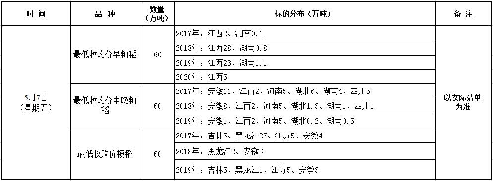 5月7日最低收购价稻谷竞价销售交易公告