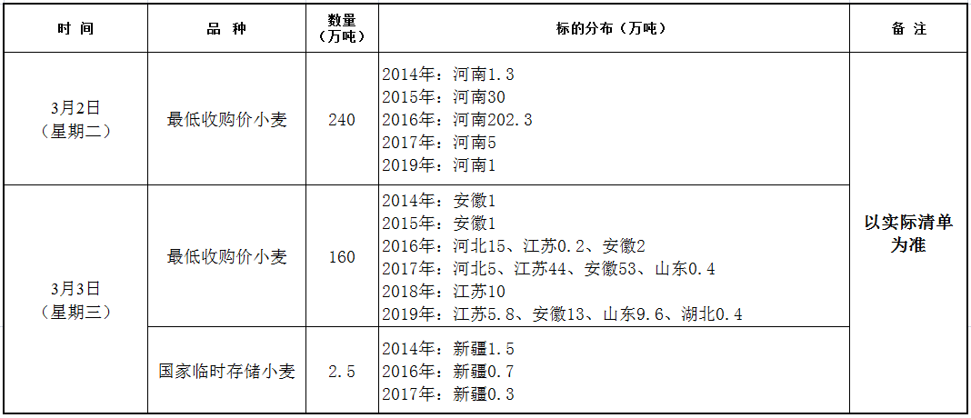 本交易安排为预公告,交易日的实际销售数量以国家粮食交易中心官网发布的交易清单为准。