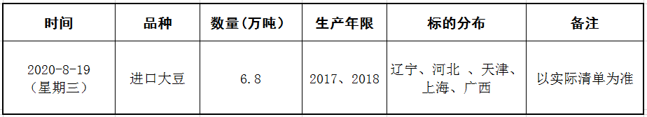 受中储粮油脂有限公司委托,2020年8月19日9:30在国家粮食和物资储备局粮食交易协调中心及联网的各省(区、市)国家粮食交易中心组织开展进口大豆竞价交易,请交易会员通过国家粮食交易中心官网(www.grainmarket.com.cn)登录“国家粮食交易平台→我要买粮→参加竞价交易→中央储备粮轮换交易”参与交易。现就有关事项公告如下(重点提示内容详见加粗字体部分):