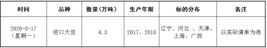 受中储粮油脂有限公司委托,2020年8月17日9:30在国家粮食和物资储备局粮食交易协调中心及联网的各省(区、市)国家粮食交易中心组织开展进口大豆竞价交易,请交易会员通过国家粮食交易中心官网(www.grainmarket.com.cn)登录“国家粮食交易平台→我要买粮→参加竞价交易→中央储备粮轮换交易”参与交易。现就有关事项公告如下(重点提示内容详见加粗字体部分):