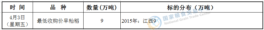 经国家有关部门研究决定,2020年4月3日在国家粮食和物资储备局粮食交易协调中心及联网的各省(区、市)国家粮食交易中心组织开展最低收购价稻谷竞价交易,请交易会员通过国家粮食交易中心官网(www.grainmarket.com.cn)登录“国家粮食电子交易平台→我要买粮→参加竞价交易→最低收购价稻谷竞价销售”参与交易。现就有关事项公告如下(重点提示内容详见加粗字体部分):