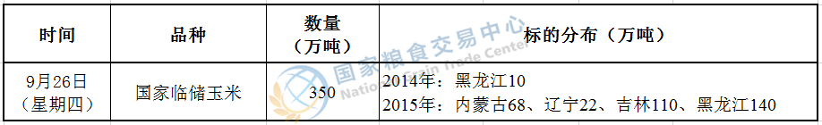 经国家有关部门研究决定,2019年9月26日在国家粮食和物资储备局粮食交易协调中心及联网的各省(区、市)国家粮食交易中心组织开展国家临储玉米竞价交易,请交易会员通过国家粮食交易中心官网(www.grainmarket.com.cn)登录“国家粮食电子交易平台→我要买粮→参加竞价交易→国家临储玉米竞价交易”参与交易。现就有关事项公告如下(重点提示内容详见加粗字体部分):