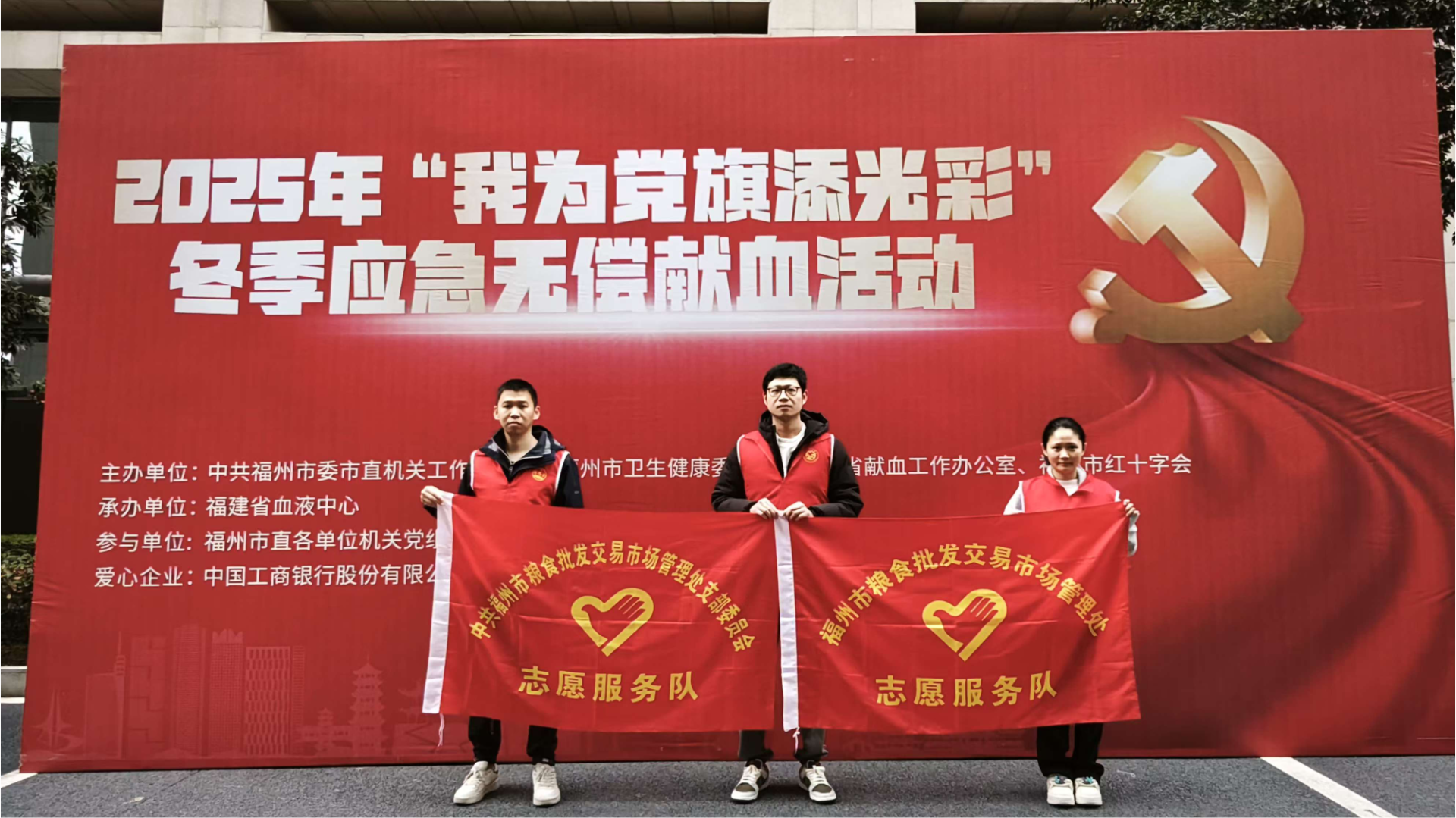 为响应冬季应急无偿献血号召,继承和发扬党的光荣传统和优良作风,2月11日,福州市粮食批发交易市场组织志愿者开展2025年“我为党旗添光彩”冬季应急无偿献血活动,党员干部发挥模范带头作用,以实际行动关爱社会、关爱他人、为党旗增光添彩。