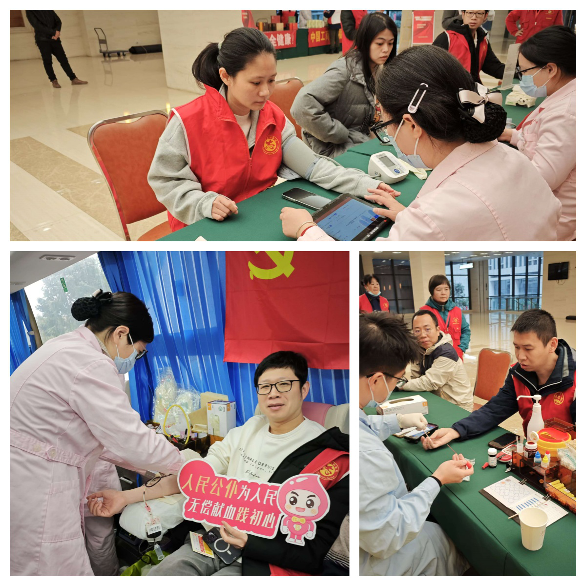 本次无偿献血活动,事先扫码进行团队预报名登记后,活动当天早上,3名志愿者来到东部办公区多功能厅西侧,按献血流程配合医务人员有序完成信息登记、血压测量、初筛化验、采集血样等准备工作,成功献血3名,献血总量达600毫升。