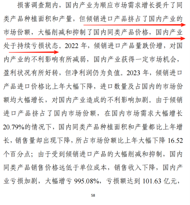 此外在仔细研读了反倾销调查初步裁定的文件,我们不难发现目前政策端对于保护国内包括农粮领域的合理利益是非常重视的(见下图)。