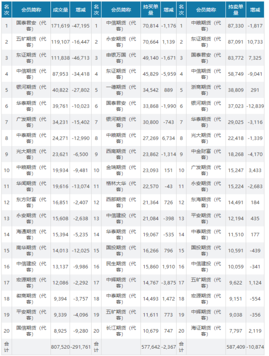持仓结构显示,当日成交量80.7万手,较前一日减少29万余手。多头主力减仓2367手至57.7万手,空头主力减仓10874手至58.7万手。盘面高开低走伴随资金流出与多空减仓,显示资金看淡短期行情,存在进一步下跌可能。