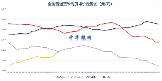 其一、从各级政策性储备小麦的成交率角度来说,面粉加工企业和饲料加工企业这轮备货需求大致接近尾声,对新季小麦减产的忧虑也有所缓解,那么接下来有保持耐心的底气了。其二,中美贸易战的暂时收兵以及传闻的进口库存玉米定向拍卖重启,尽管对玉米市场的供需面并没有形成实质性的冲击,但从心理上和情绪上对收益颇为丰厚的渠道贸易商也会构成了一定的压力,这必然会导致玉米市场价格出现回调,从而对小麦替代玉米饲用的高性价比形成威胁。其三、随着2025年新季小麦由南至北继续登场,2360元-2400元/吨的开秤价也同样在持续,从增量和运输距离的角度来说,面粉加工企业对小麦的定价权又可以继续增强。