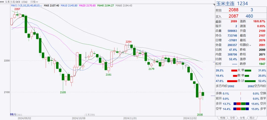 玉米期货主力合约走势图