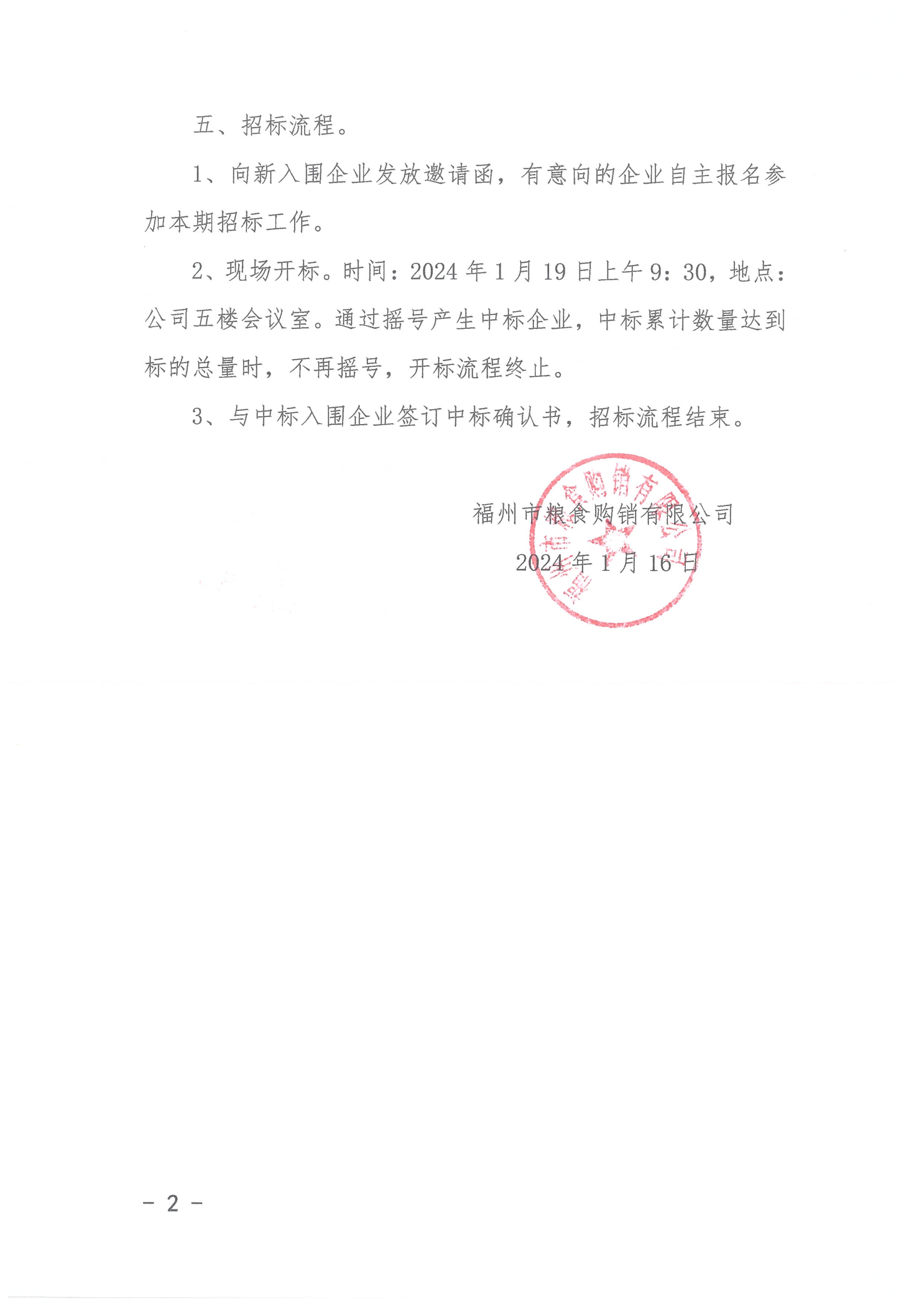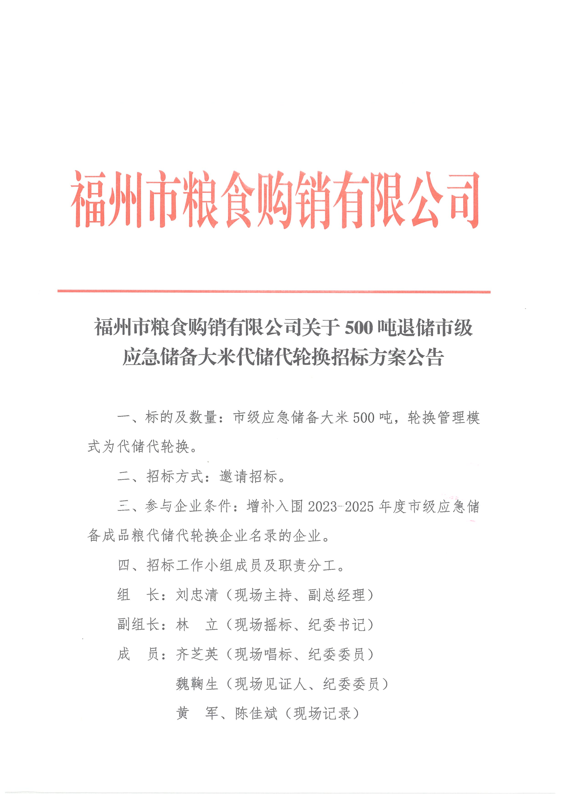 福州市粮食购销有限公司关于500吨退储市级应急储备大米代储代轮换招标方案公告