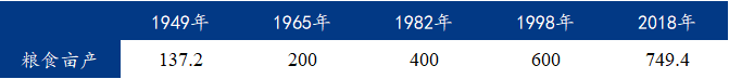 表2 建国以来粮食亩产发展情况 单位:斤/亩