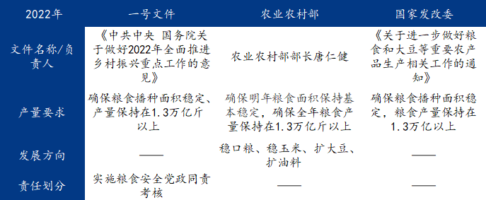 2022年,粮食安全问题进一步升级,国家重视程度再次提高。2022年中央一号文件《中共中央国务院关于做好2022年全面推进乡村振兴重点工作的意见》、农业农村部、国家改革和发展委员会等多方面反复提及粮食安全问题。提出“中国人的饭碗任何时候都要牢牢端在自己的手上,饭碗中主要装中国人的粮”。