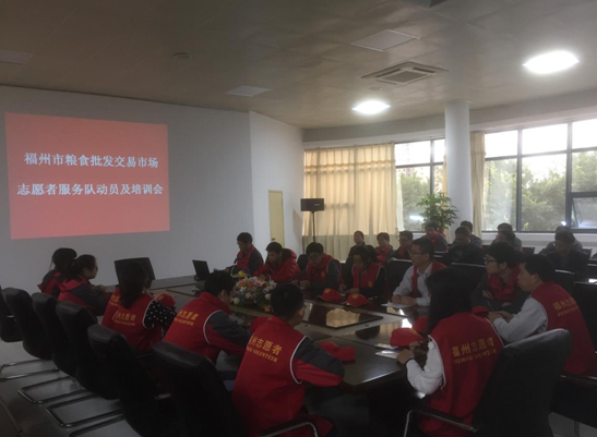 2017年4月11日上午9点30分,吴忠芳主任在二楼会议室主持召开福州粮食批发交易市场志愿者服务队培训会。