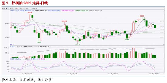 油脂盘面近期波动幅度较为剧烈,经历了6月16日当周的大幅上冲之后,于上周开始有所回落。一方面在于美豆油生柴政策方面的利多情绪已经大幅释放,在未出现变数的情况下市场情绪回稳;另一方面,此前为植物油带来强劲提振的原油格走势,上周在地缘风险回吐的情况下大幅回落,也对油脂盘面形成了拖累。截至2025年6月27日,豆油主力合约周线收跌1.89%;菜籽油主力合约周线收跌2.67%;棕榈油主力合约周线收跌1.87%。