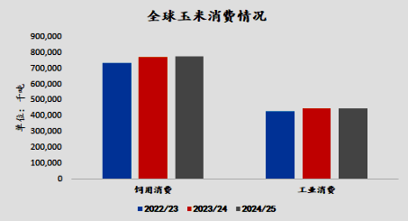 全球玉米消费聚焦于两个方面:一是饲用消费,二是工业消费。