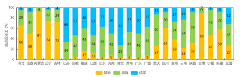 附图2 3月2日分省20厘米土壤墒情统计(站点百分比)