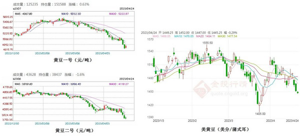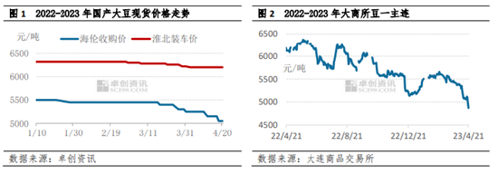 4月中下旬,东北地区大豆价格重试跌势,大商所豆一期货跌破5000元/吨关口,叠加CBOT大豆价格下滑,港口进口成本下降,需求步入淡季,在多重利空的施压下,市场信心缺失,南方大豆市场行情预期僵持偏弱。