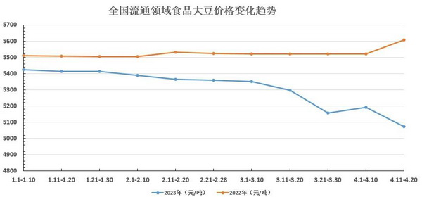 图1 2023年1-4月份全国流通领域食品大豆价格变化趋势图