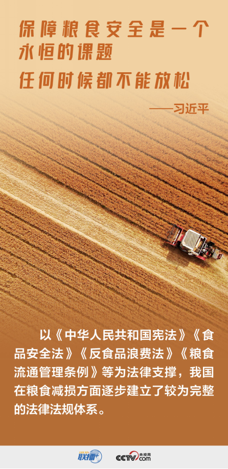 “在吃饭问题上不能得健忘症”“什么时候都不能轻言粮食过关了”“对粮食安全还是始终要有危机意识”……粮食安全,事关国计民生,习近平总书记念兹在兹。我国粮食安全形势总体向好,但我们必须清醒认识到,随着气候变化影响日益加剧,资源环境约束日益趋紧,我国粮食产量实现持续高位增产的难度加大。与此同时,我国粮食损耗浪费严重。有调查显示,受收获时间选择不精准、农机精细化水平低、仓储条件不达标等多方面因素影响,我国小麦、水稻、玉米等粮食作物在收获、保管、运输等环节存在不同程度漏损状况。因此,要实现“把中国人的饭碗牢牢端在自己手中”的目标,必须坚持开源与节流并重,增产与减损并行。