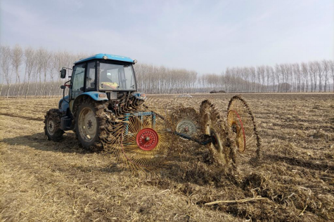 2022年4月4日,吉林德强种植业家庭农场农民在田间进行秸秆归行作业。新华社发
