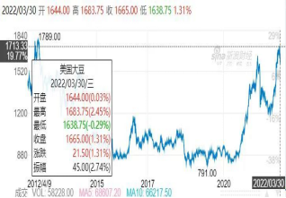 无独有偶,美豆期价自去年10月开始反弹,俄乌冲突暴发后逼近2012年最高点。