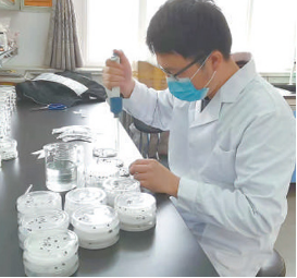 山东省东营市农业科学研究院盐生植物与生态农业研究所育种实验人员宁凯在做实验。资料图片