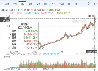 事实上,美棉期价自去年9月来振荡走强,俄乌冲突暴发后攀登至2012年来最高点。